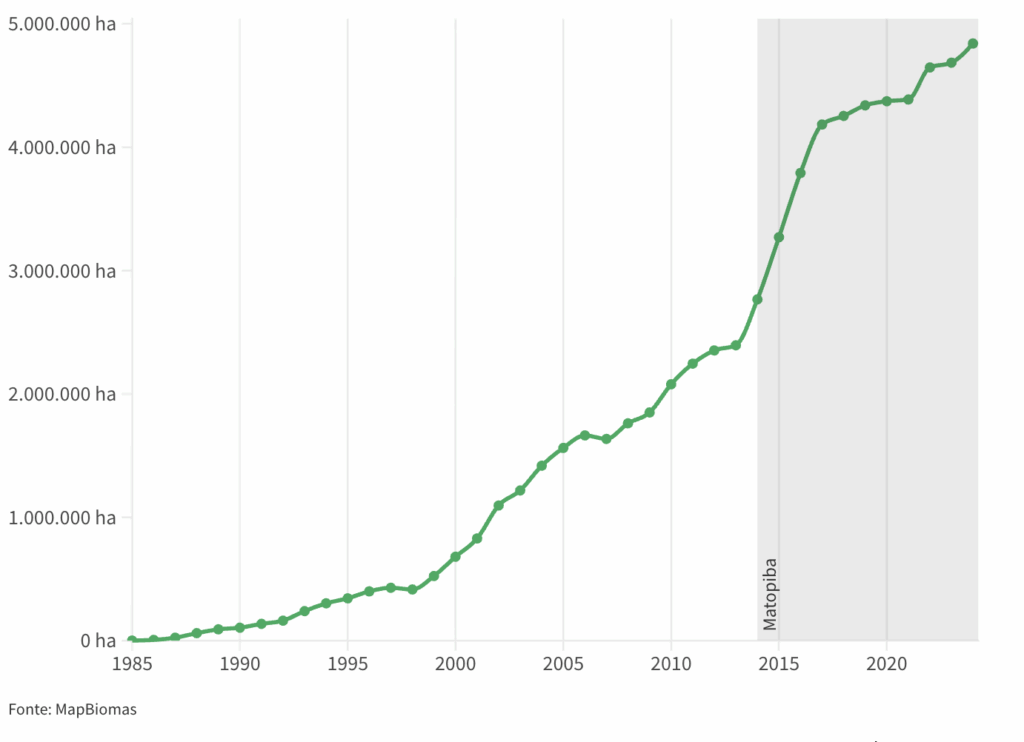 Na região do Matopiba, houve um aumento de 75% da área destinada a lavouras de soja entre 2014 e 2024