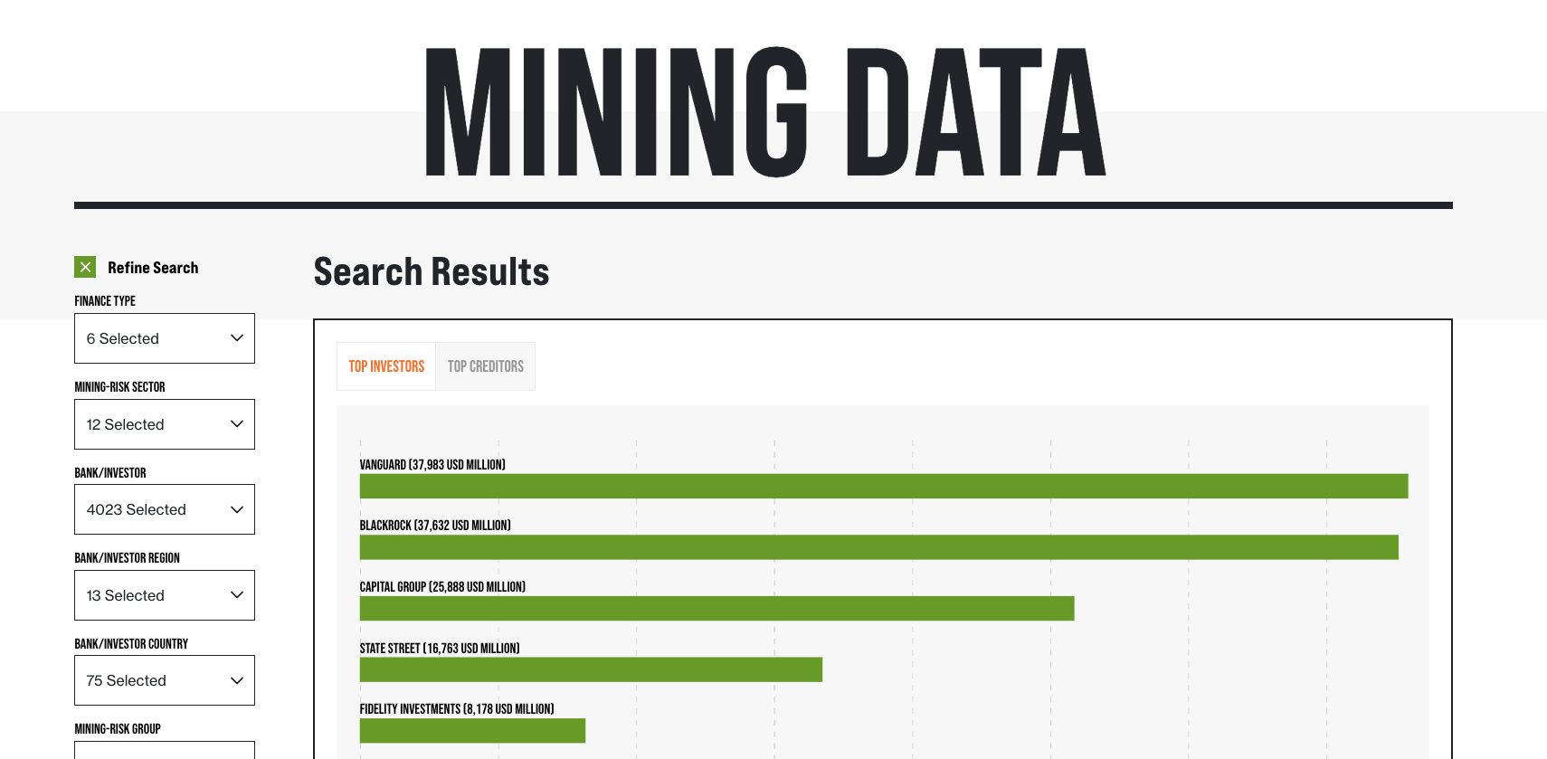 Find out who are the main financiers and investors in mining companies