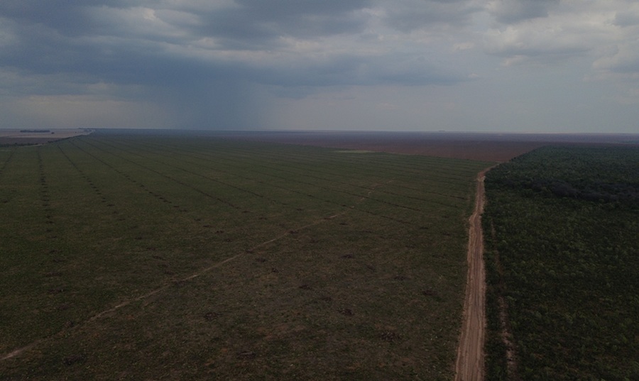 A atividade agrícola fica na região do Matopiba, região que lidera o desmatamento no Cerrado. O plantio ocorre dentro de um polígono embargado que se sobrepõe à Fazenda Serra do Ovo. Os indícios de cultivo agrícola aparecem em imagens de satélite registradas em janeiro de 2026, analisadas pela organização holandesa AidEnvironment, a pedido da Repórter Brasil.