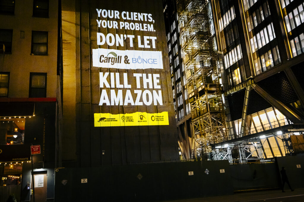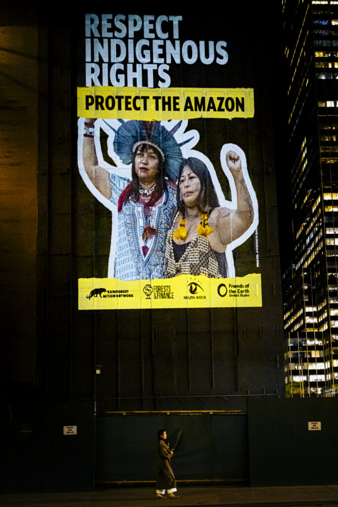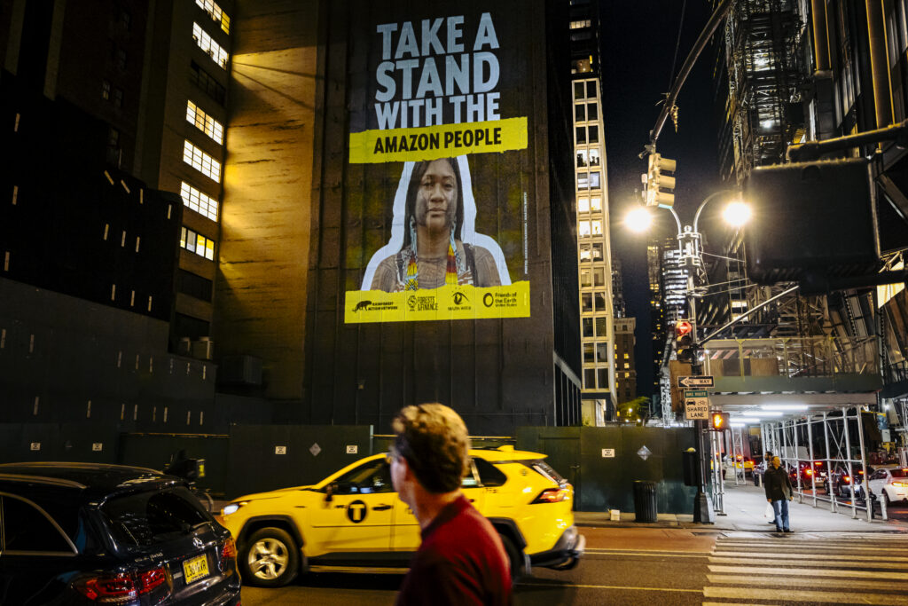Giant projections of Indigenous-led protests and images of Amazon forest destruction were cast onto iconic New York City buildings, bringing the realities of the Amazon crisis directly into the financial capital of the world.