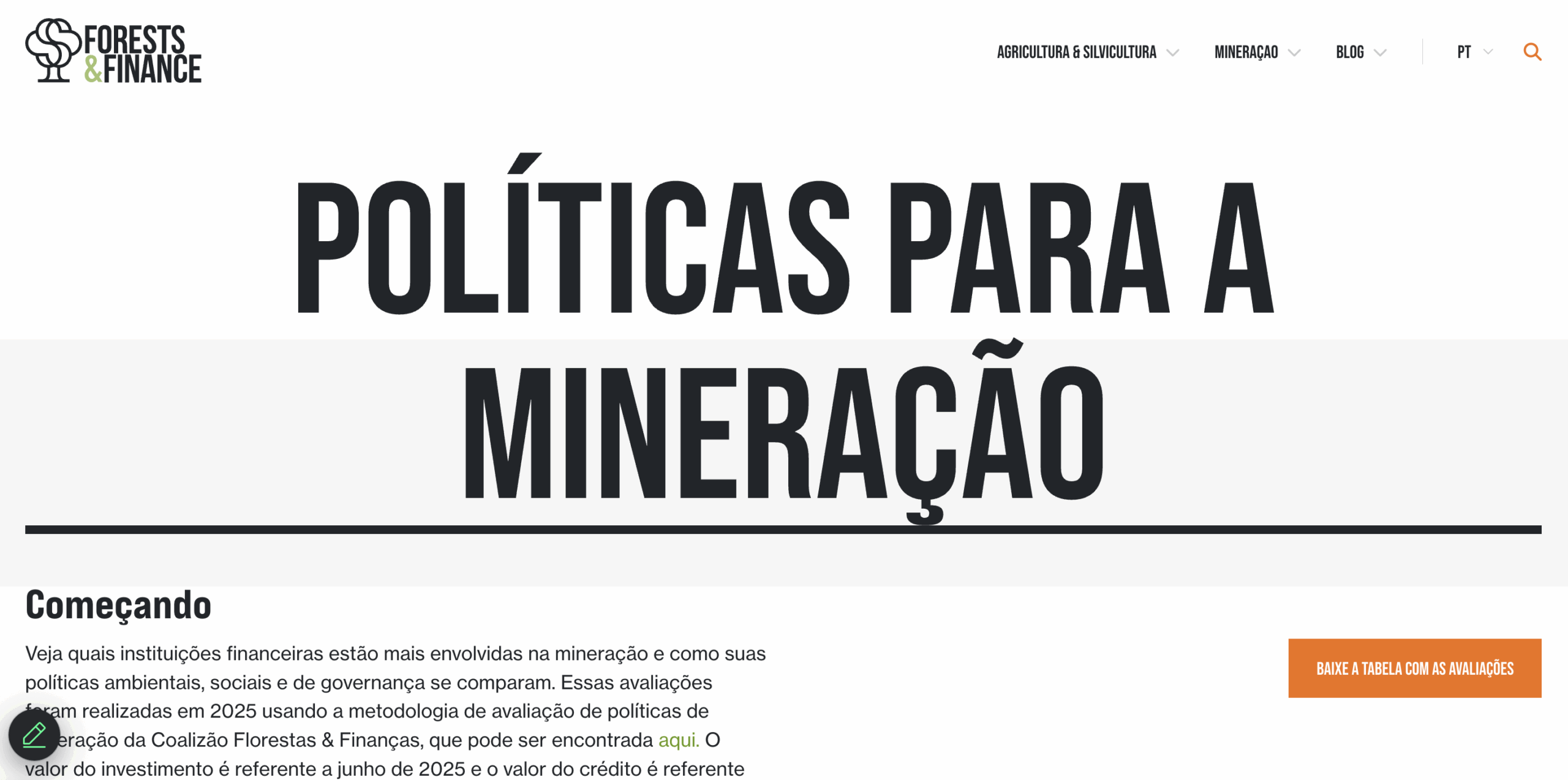 Avaliação das políticas das instituições financeiras em matéria de exploração mineira.